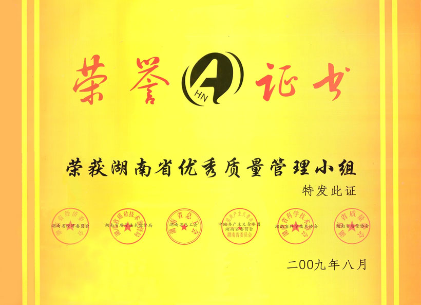 湖南省优秀质量管理小组证书