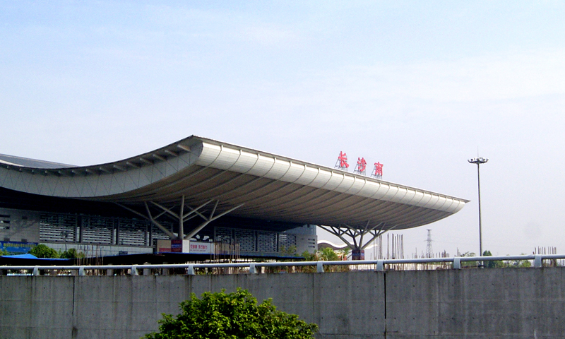 长沙南站,又称新长沙站,位于长沙市雨花区黎托街道,为京广客运专线、沪昆客运专线、渝厦客运专线的客运枢纽站,是中南地区最大的车站。车站2009年12月26日建成启用。由中南建筑设计院第三设计所设计,站台雨棚以水的波浪为设计特色。长沙南站设有站台8座,16股道,中间2条正线。建筑面积40万平方米,其中站房建筑面积13.7万平方米。长沙南站与地铁站、城际铁路、长途客运站、公交枢纽站融为一体,实现长途列车与市郊列车的无缝对接。